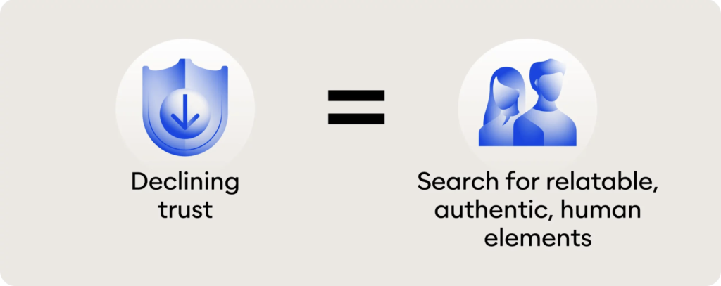 As society becomes more sceptical of traditional institutions, be it government, media, or large companies, people are seeking genuine connection and authenticity from the people behind the products and services.